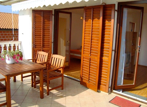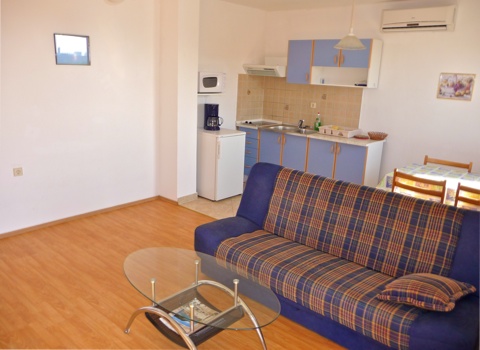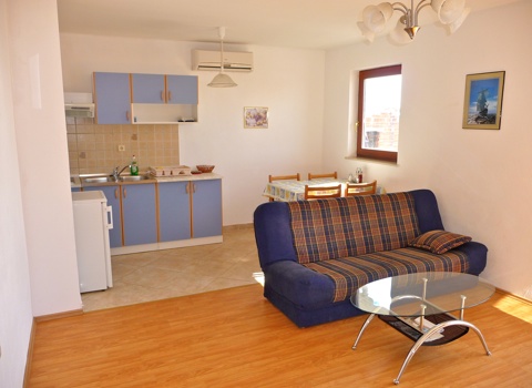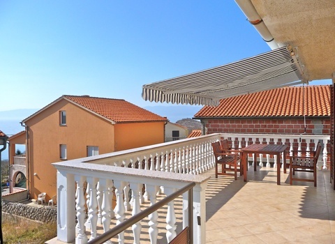 Das 3 Zimmer große Apartment befindet sich im 1. Stock des Hauses und ist ideal für 4-5 Personen. Der geräumige Südbalkon bietet eine herrliche Aussicht auf das offene Meer und lädt zum gemeinsamen Frühstücken und zu abendlichen Cocktails ein.